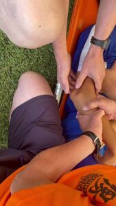 そこに柔道整復師の資格を持つ者も帯同、学生とともに対処します。