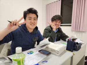 笑顔ピースの写真と勉強している風の写真wwを撮らせてもらいました